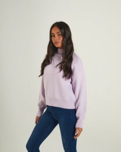 סוודר סריג רך במיוחד עם צווארון דומה, מכפלת וחפתים. סיים עם תג מתכת דיזל מעל המכפלת.