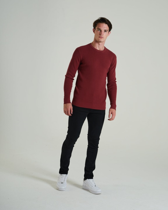 סוודר סריג בעל צווארון עגול במרקם, חפתים מצולעים ומכפלת, תג מותג דיזל.