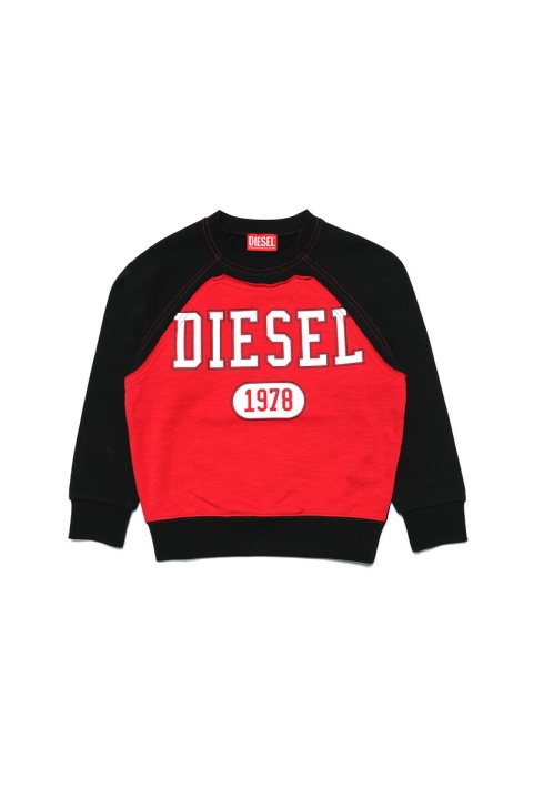 סווטשירט לבנים עם שרוולי ראגלן, בנוי מג’רזי כותנה רכה. כולל תפרים ניגודיים, הוא מעודכן עם פאנל קדמי בחיתוך גולמי עם הדפס לוגו של דיזל 1978 נוסח קולג’.