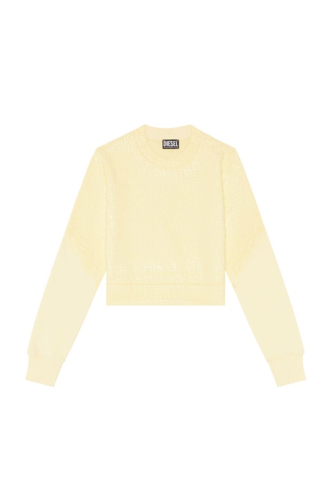 סווטשירט לנשים בגזרה דקיקה בנוי מג’רזי כותנה. מותג עם הדפסה מונוגרמה של דיזל עם גומי.