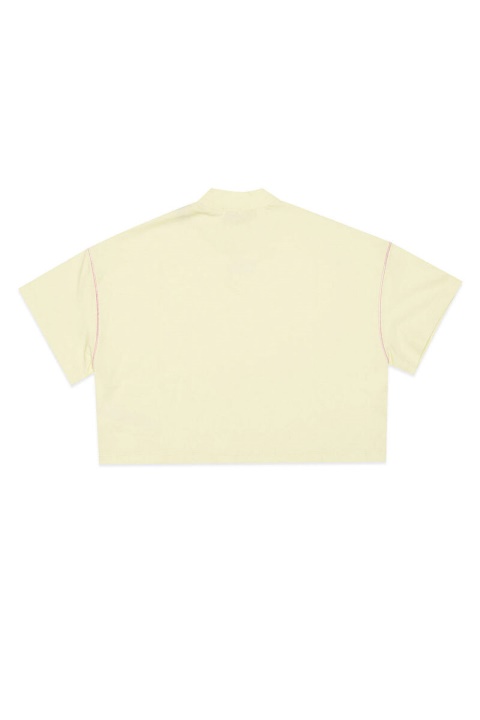 טי קצוץ לילדות עשוי מג’רזי כותנה טהורה. הגזרה הקופסתית שלו מתעדכנת עם צוואר דומה מצולע. מפורט עם לוגו כסף של Diesel For Successful Living על החזה ומודגש עם תפרים ניגודיים.