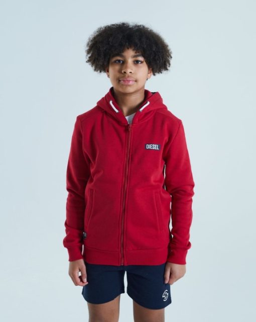 דיזל בויז מכסה מנוע מלא עם רוכסן. מכסה מנוע קשירת חבל עם תכונה חשופה. הדפסת לוגו דיזל על החזה