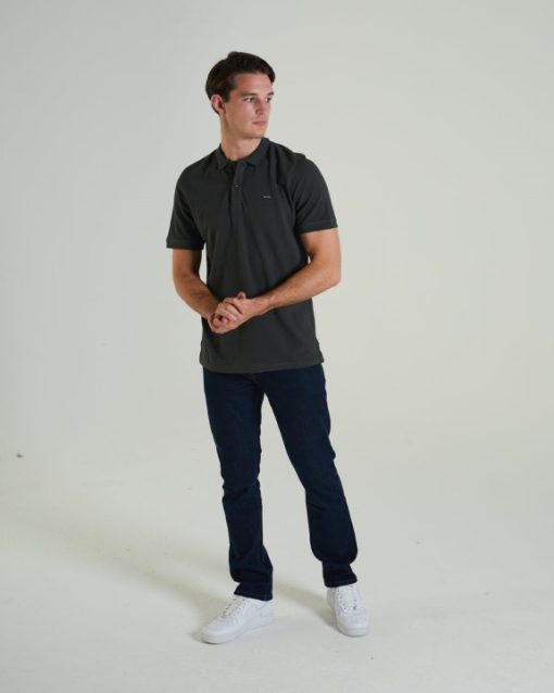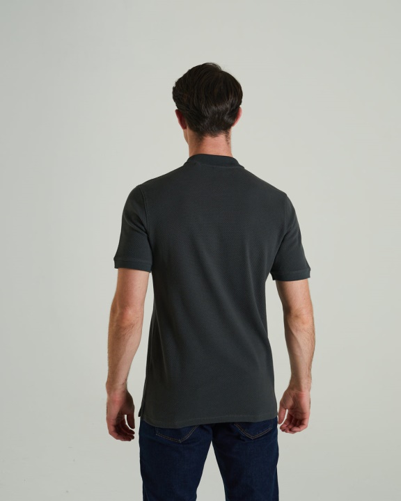 חולצת פולו לגברים במרקם כותנה עם תג גומי ממותג בחזה. כפתור קדמי של X2 למראה חכם ומלוטש.