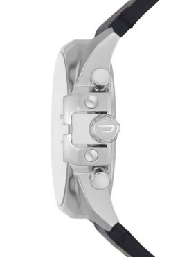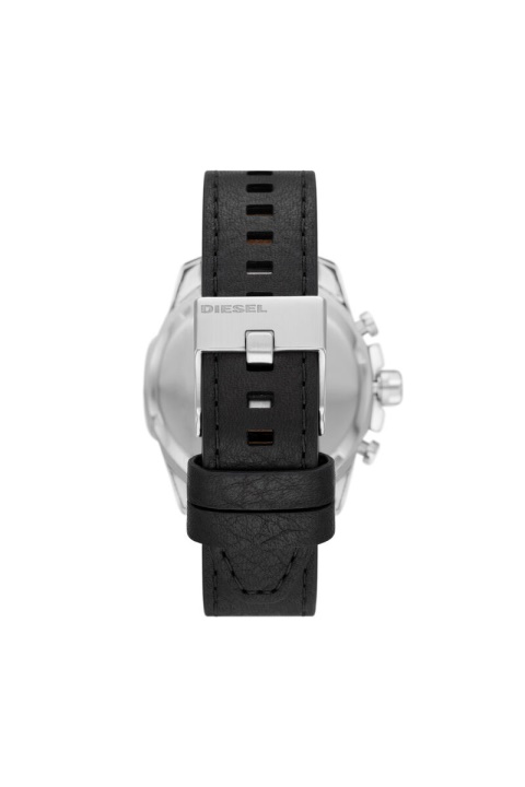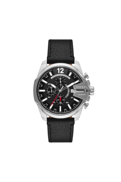 WARRANTYשעון Baby Chief בגודל 43 מ”מ של דיזל כולל חוגה שחורה של קרני שמש, תנועת כרונוגרף ורצועת ג’ינס ועור שחורים.