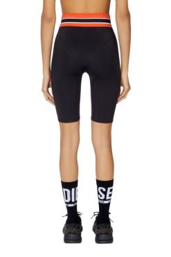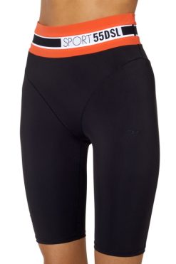 מכנסי אופניים לנשים ממגוון DIESEL SPORT. תפורים עם קווי מתאר של תחתונים צרפתיים בגזרה גבוהה, יש להם גוון שחור ומותניים גבוהות מנוגדות שחוברות ברצועת לוגו. בד המתיחה החלק מציע הגנת UPF ומנדף לחות מהגוף.