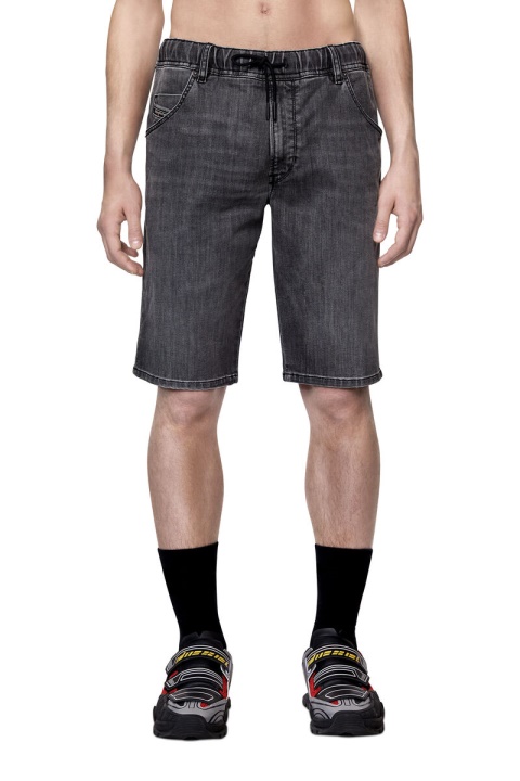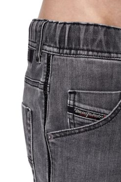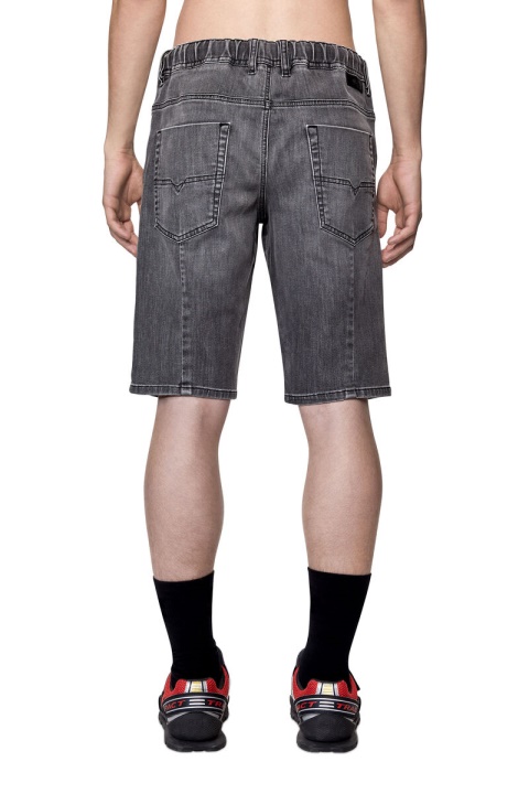מכנסי חמישה כיסים. זוג זה באורך הברכיים עשוי מ-JoggJeans לנוחות מירבית. מעובד בכביסה אפור כהה, מטופל קלות עם שפם וגימור ניואנסים ליצירת מראה חי.