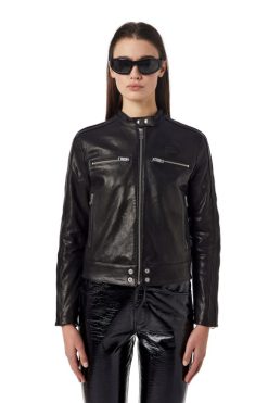 מעוצב מעור טלה מטופל, ז’קט בכושר רגיל זה מתהדר בצללית רייסר יעילה. בציפוי כיסי רוכסן אופקיים ואנכיים, הוא כולל טלאי לוגו ד אובלי טונאלי על החזה.