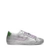 נעלי ספורט אלה עשויות מעור פרימיום גמיש, עם מיתוג מוטבע על לשונית העקב. החלק העליון בחתך נמוך מציג עיצוב דק ונשען על סוליית גומי מגופרת.