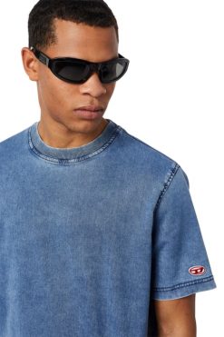 חולצת טריקו קופסת מעוצבת מ-Track Denim לנוחות מירבית. מפורט עם תיקון לוגו ד אובלי. הוא מטופל עם תוף שוחק מיוחד כדי להשיג את הגוון הרך והבינוני של כחול.