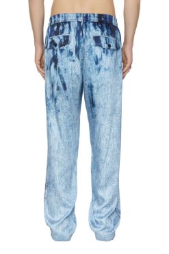 מכנסיים לשני המינים האלה חתוכים מסאטן טכני, ומציגים הדפסה ג’ינס טרמפ לאיל.