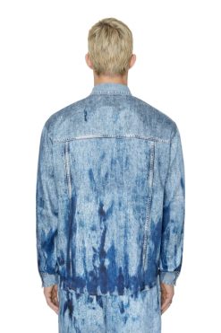 חולצת סאטן בגזרה רגילה לשני המינים עם הדפסה של Trompe L’oeil. שוליים בגינס דיזל בצווארון ובחפתים בטיפול תואם.