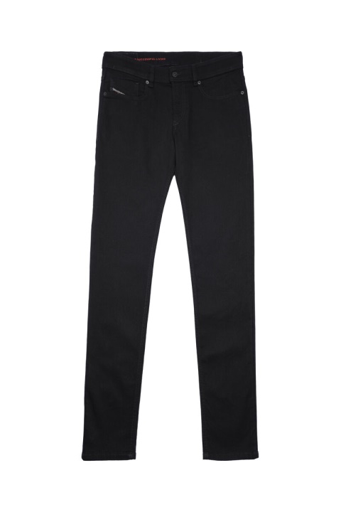 סגנון סקיני עם מותניים נמוכים ורגל צרה באורך רגיל מהיר ועד הקרסול, מעוצב עם גישה של פאנק-רוק. כולל כביסה שחורה מבד סופר נמתח.