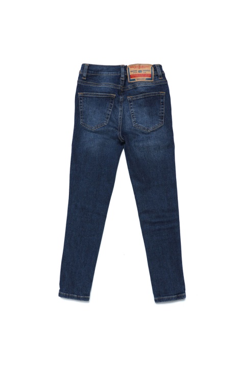 סגנון סופר-סקיני עם מותניים גבוהים. עיצוב חגורת המותן והכיס החמישי בהשראת ארכיון דיזל. זוג ג’ינס מתיחה זה מציג כביסה נקייה, עם שפם קל, פרטים בגימור יד ותפירה בצבע מנוגד.
