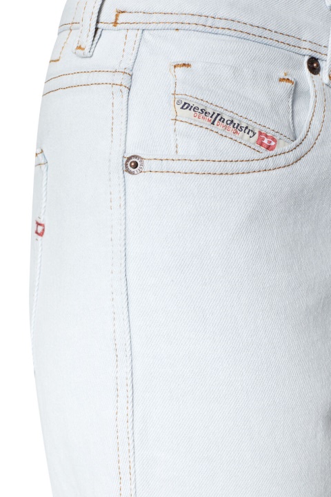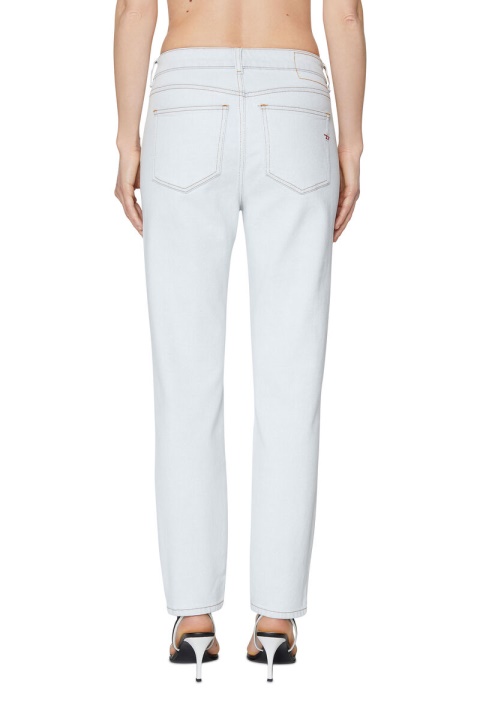סגנון דק עם מוטן רגיל וזבוב רוכסן. משדר אווירה רעננה וקז’ואלית, הוא מעוצב עם רגל מחודדת באורך הקרסול. כביסה תכלת זו מיוצרת באיטליה. הבד כולל סיבים ממוחזרים והוא מעורבב למתיחה.