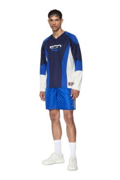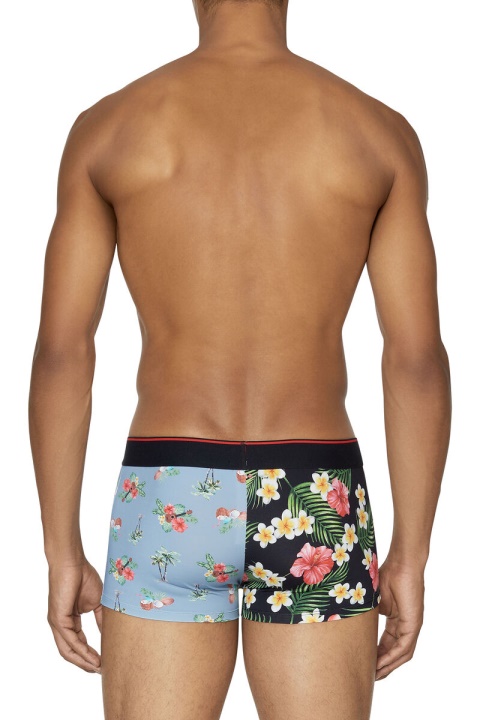 תחתוני בוקסר ניילון נמתח לגברים ממזגים שני הדפסי הוואי מנוגדים. חגורת המותן האלסטית מעוטרת בלוגו מרכזי של דיזל ג’ינס ופס אדום.