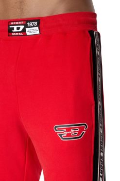 מכנסי הטרנינג קולקציית DIESEL SPORT גזורים מג’רזי לולאה מצופה שמנדף לחות. מותגים עם תגית דיזל, גרפיקה גדושה ורקמת ד קטנה, יש להם מותניים מצולים וחפתים וכיסים דיסקרטיים על התפר. לוגו נועז גמר ג’קארד BWicking הישאר קריר ויבש עם בדים שנועדו למשוך לחות מהעור