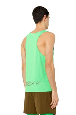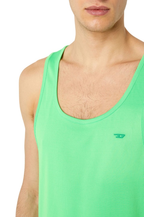 חלק מקולקציית DIESEL SPORT, גופיית גברים זו בנויה מבד טכני מנדף זיעה עם מרג ממעוף הציפור. צללית ה-racerback שלו מתהדרת בהדפסה גומי גדול מדי על הגב ולוגו ‘D’ מגומי על החזה.