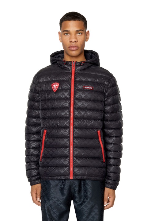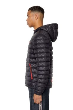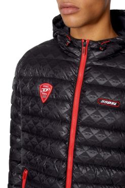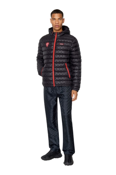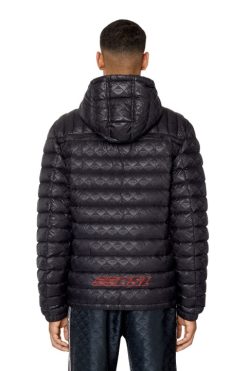 מעיל פחזנית לגברים של DIESEL SPORT מניילון מבריק עם דוגמת מונוגרמה מוטבעת ‘D’. מנדף לחות עלון לאריזה, חזר נוסח ברדס זה יש תעלות מרופד מבודדות עם מילוי פוך ממו ושולי אחוריים ארוכים יותר להגנה על הרוח. המיתוג והטלאים הרקומים של הקולקציה חותמים את המראה.