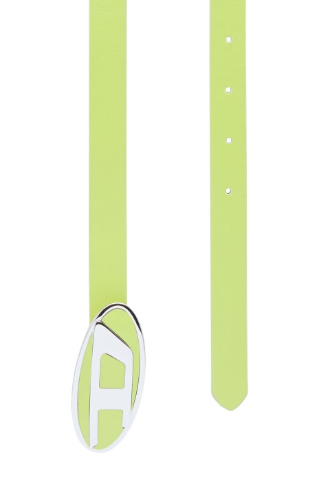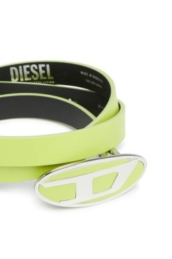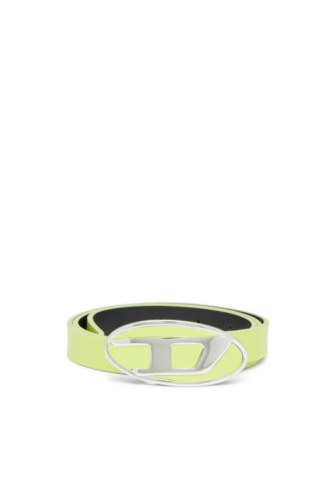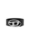 חגורת עור לנשים מהודקת עם אבזם ‘ד סגלגל’ מודגש.
