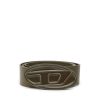 חגורת עור הפיכה, צד אחד חלק וצד אחד מגורען. אביזר גברים זה כולל קצה מרובע ומהודק עם אבזם לוגו D אליפסה ממתכת.