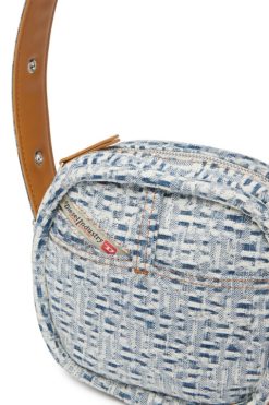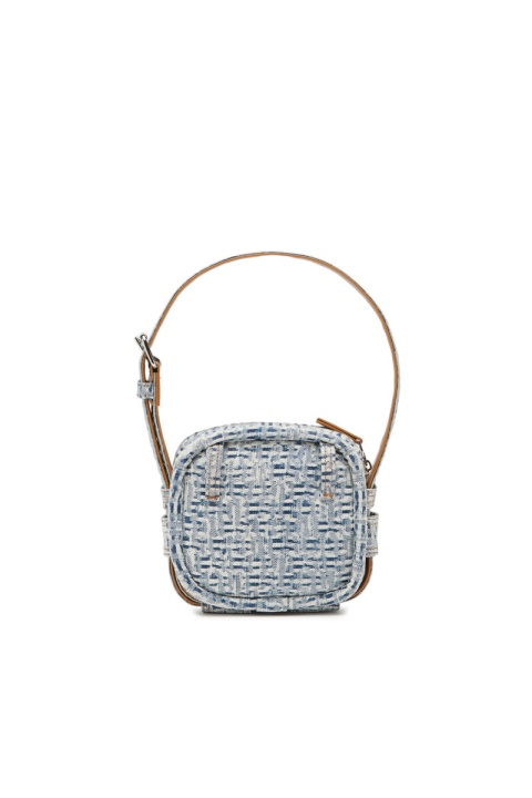 בג’ינס תכלת עם עיטוריזופים, תיק הכתף לנשים זה כולל מוטיב לוגו אקארד ופרטים נוסח ג’ינס, כמו דגל הלוגו האייקוני של הכיס החמישי. ניתן למקם מחדש את הרצועה דמוית החגורה המחוררת לאורך הבסיס כדי להמיר את התיק לחפיסת פאני.