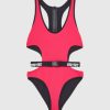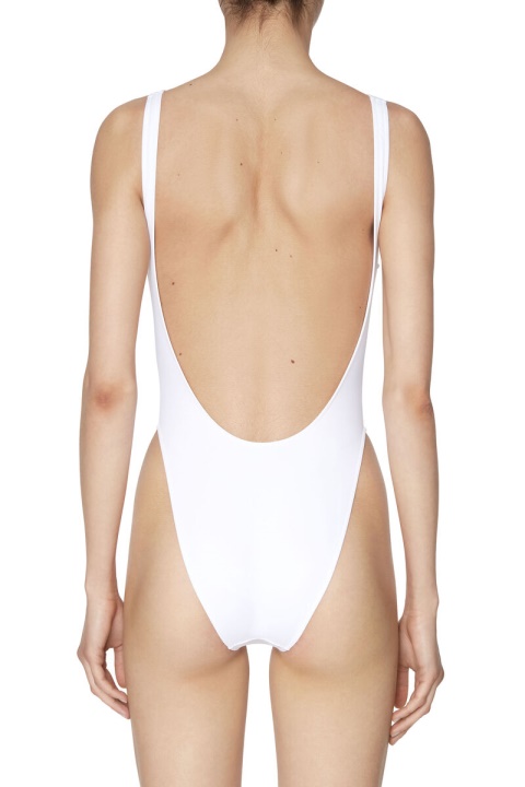 תחפושת שחייה עם סקופ-גב חתוכה מניילון ממוחזר לייקרה, מעוצבת עם טכנולוגיית דחיסה ושמירת צורה, הגנת UV ועמידות משופרת לכלור וקרם הגנה. מותג בהדפסה מקסי Diesel For Successful Living.
