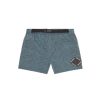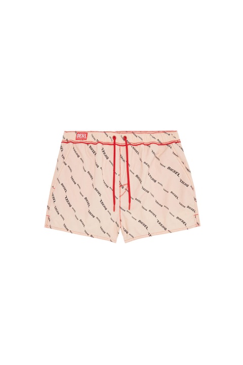 בגד ים לגברים חתוכים ממעטפת קלה עם הדפסת לוגו אלכסונית על כל הגוף. זוג עירום זה כולל הדגשים בצבע אדום ובטנת רשת רכה.