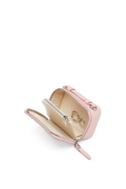 עיצוב רוכסן קופסתי עם רצועה צולבת, ארנק נשים זה משמש כתיק מיני. הוא עשוי מעור בולט גרגירי בועות בגוון ורוד סומק ובעל גימור עמיד בפני נקודות. החזית מעוטרת בחומרה ‘אובלי ד’ מצופה אמייל.
