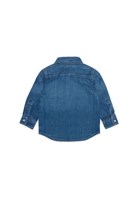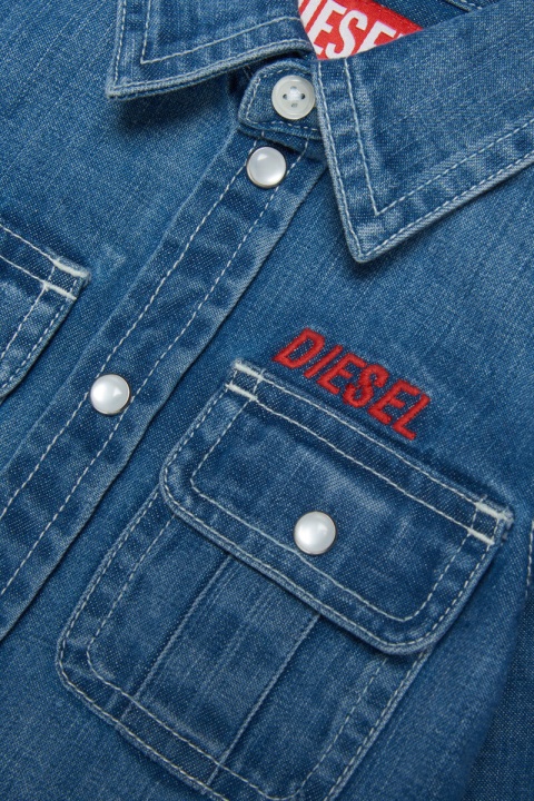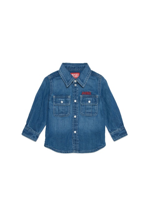חולצה זו עשויה כחולה מג’ינס כותנה, עם כפתורי פנינה ולוגו דיזל רקום אדום.