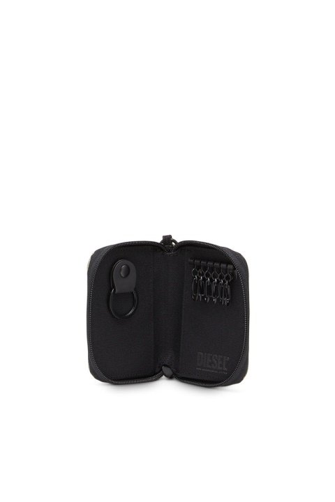ארנק מפתח רוכסן לגברים מבד הסוואה חאקי. כולל שרוך חבל וחומרה מט שחורה, העיצוב הוא גימור עם סמל ‘סגלגל D’ מובלט בחזית.