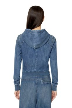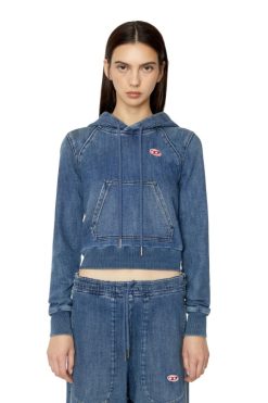קפוצ’ון קצוץ לנשים עם צללית Raglan מותאמת, עשוי בד Track Denim. על החזה יש סמל ד וינטג’. שטיפת אבן לרכות, כביסה כחולה בינונית זו משדרת מראה משומש אותנטי.