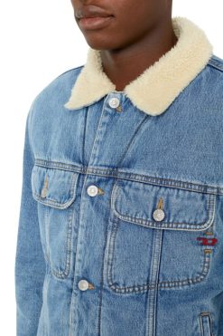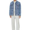 ז’קט ג’ינס לגברים עם צללית בגזרה רגילה. סגנון חורפי, מבודד בטדי אקרו רך הנמשך עד לצווארון. כביסה כחולה בינונית חיונית זו עשויה מבד פיקס ומטופלת עם תוף שוחקים מיוחד. מראה הוינטג’ מודגש עם שפם ואפקטים ניואנסים.