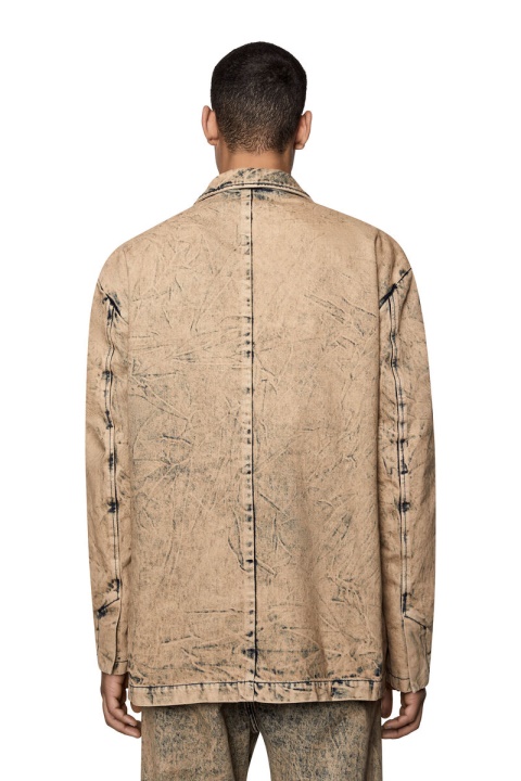 בלייזר ג’ינס צבוע יתר על המידה. מפורט עם רקמת ד על דש הכיס, יש לו צללית קופסת, חד חזה, והוא ננעל עם שני כפתורי שוק. כביסה צבעונית זו עשויה מג’ינס קבוע בתערובת של סיבי כותנה וקנבוס. את בניית הבגד.