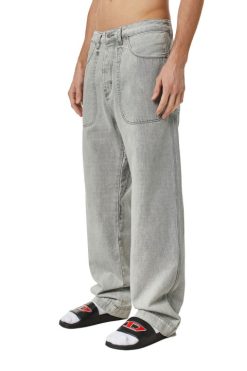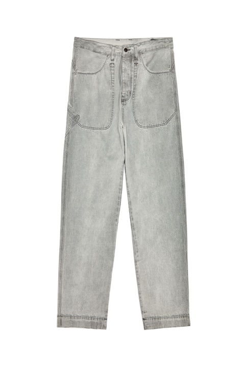 סגנון ישר עם מבנה קלאסי של חמישה כיסים וטלאי צד בהשראת שימוש בשתי הרגליים. השטיפה האפורה הזו מעוצבת מג’ינס קבועה ומציגה אפקט ענן ייחודי שנעשה בטכניקת צחצוח אוויר.