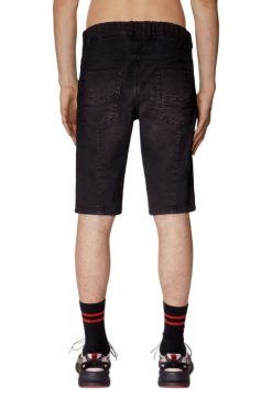 מכנסיים קצרים באורך 5 כיסים אלה באורך הברך חתוכים להתאמה דקה מבד Track Denim לנוחות מירבית. לכביסה זו גימור שחור מטופל, משופר ידי שפם ושפשופים בעבודת יד.