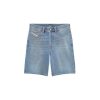 מכנסיים קצרים לגברים באורך הברך מבד Track Denim JoggJeans. לזוג הזה יש צללית דקה עם חמישה כיסים ושרוך מותניים. כולל שטיפה כחולה בינונית עם מראה משומש טבעי, משופר על ידי גימור תלת מימדי.