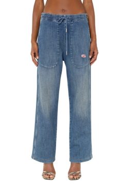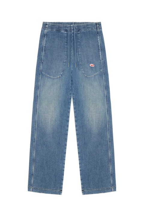 סגנון משוחרריד מותניים אלסטיות וחוט שרוך גווני. ג’ינס מסלול יוניסקס זה מפורט עם כיסים קדמיים גדולים, כיס רצועה בודדת מאחור ולוגו “D” וינטג’. שטיפת אבן לרכות, כביסה כחולה בינונית זו משדרת מראה משומש אותנטי.