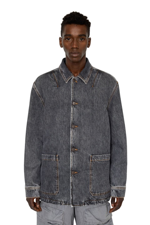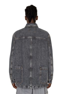 מבודד עם בטנה מרופדת מרופד, ז’קט ג’ינס לשני המינים הזה בעל צללית קופסתית של בגדי עבודה עם כיסים עם כיסים מלפנים ומאחור. בד ה-fix השחור עשוי באמצעות תערובת של סיבי כותנה וקנבוס ומטופל עם שטיפת אבן חלופית למראה חי.
