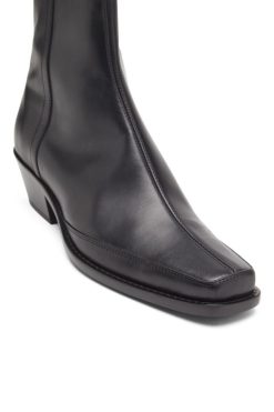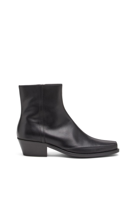 מגפונים לגברים אלה מעוצבים מרובעת קלאסית עם בו עקב מעור שחור ומשובצים קובניים שמנמנים.