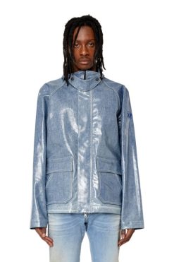 מעיל כחול גברים זה עשוי מג’ינס עם יצירת ‘מלח ופלפל’ וציפוי עמיד למים ברק גבוה. מפורט עם לוגו ‘אובלי D’, סגנון זה כולל צווארון חולצה, תפס גרון וכיסים גדולים עם כניסה כפולה.