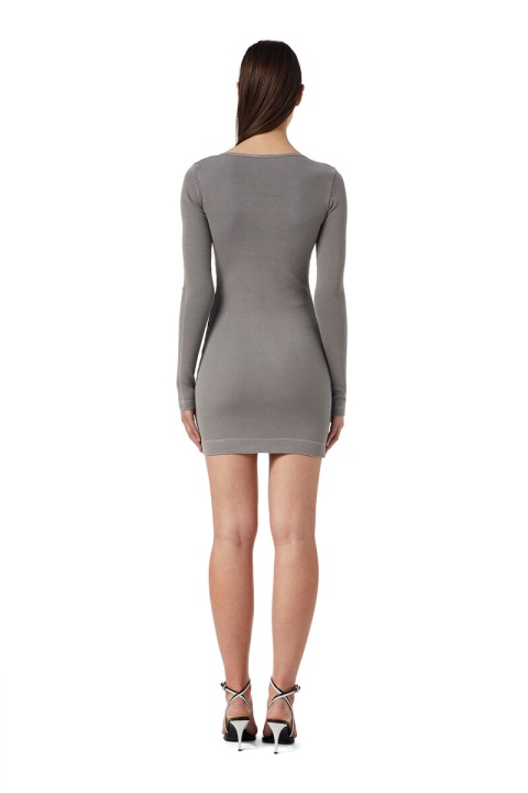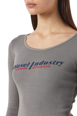 סטייל צמוד עם שרוולים ארוכים, שמלת מיני זו גזורה מג’רזי כותנה מתיחה מצולעת וצבועה בפיגמנט לגוון דהוי. לוגו דיזל תעשיית הג’ינס בהדפסה נפוח מדגיש את החלק הקדמי. בגד זה יוצר באחריות.