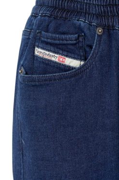 סגנון דק עם מותניים רגילות ורגל דקה, עשוי מ-Track Denim לנוחות מירבית. הג’ינס מהנהן לצלליות מטען, עם כיסי תיקון על הירכיים ומותן שרוך אלסטי. כביסה כחולה כהה זו פסיכולוגית טכניקות מרובות כדי ליצור מראה נקי, מעט משומש.