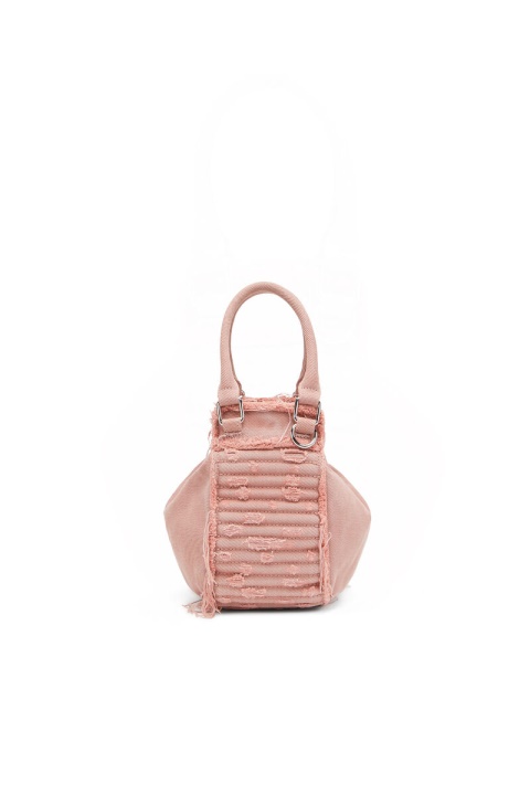 תיק יד זה לנשים של FW Runway Show Collection ’22 בעל צללית מטופחת ומיניטורית עם ידיות עליונות ורצועה ניתנת להסרה ארוכה יותר ללבישה צולבת. הוא עשוי מלוחות חלקים ומרופדים של קנבס צבוע יתר על המידה, והוא מציג חומרת לוגו מועשרת בקריסטל בחזית.