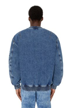 מעיל הפצצה ג’ינס לגברים זה בעיצוב מוכן לחורף, בעל פנים מרופד וגזרות אלסטיות. הבד הכחול פיקס מיוצר באמצעות תערובת של סיביכותנה וקנבוס וטיפול טכנולוגי שטיפת אבן חלופית למראה חי.