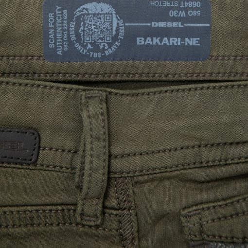 ג’ינס Olive ‘Bakari-Ne’ מבית דיזל. בנוי מבד ה-JoggJeans החדשני שלנו עם מתיחה גבוהה, התאמה סקיני זו יכולה תנועה קלה אך מחזיקה את הצורה. חיפוי ברכיים בהשראת מוטוקרוס מוסיף זריקה של גישה לאופנוענים.