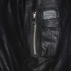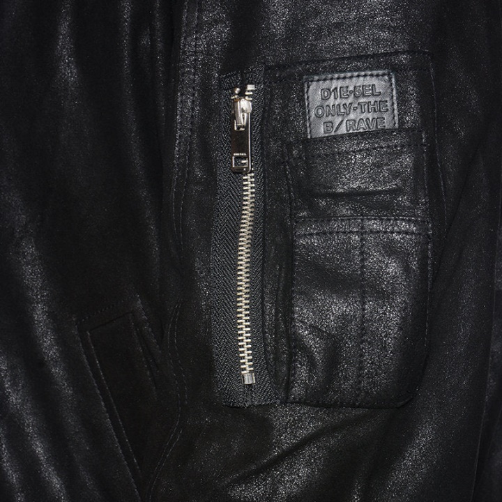 Diesel L Nicolai מעיל בומבר לגברים עור בית קפה רייסר חורף מעיל שחור