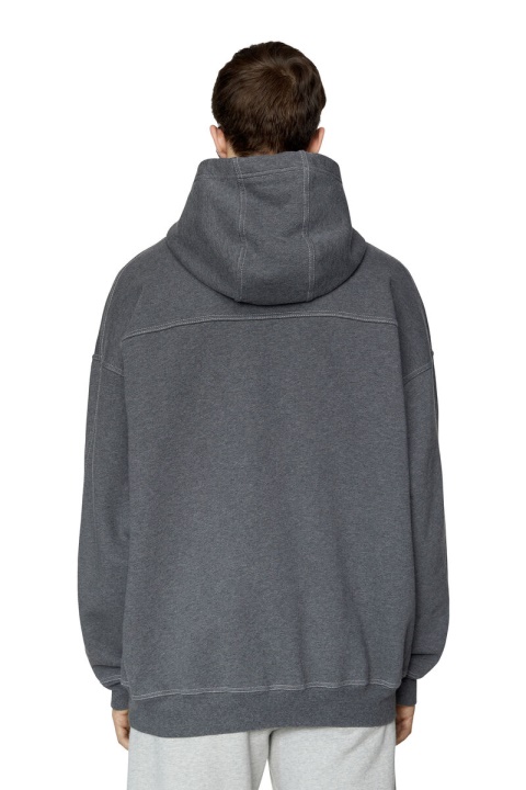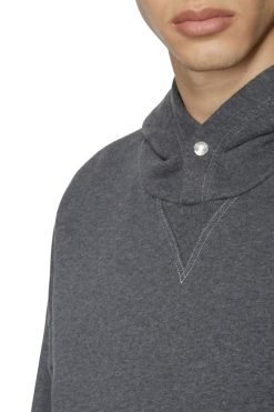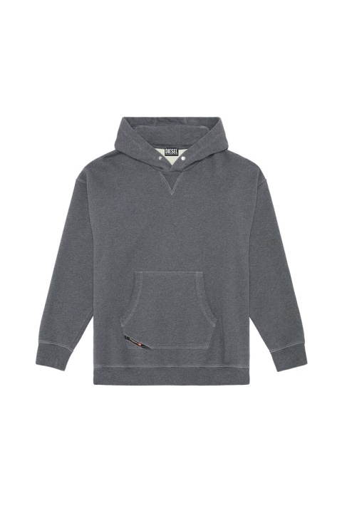 קפוצ’ון לגברים בג’רזי כותנה כבדת משקל, עם גזרה רפויה וכתפיים שמוטים. כבוד לג’ינס, הסווטשירט הזה כולל שטיפת אבן ודגל הלוגו האייקוני של הכיס החמישי.