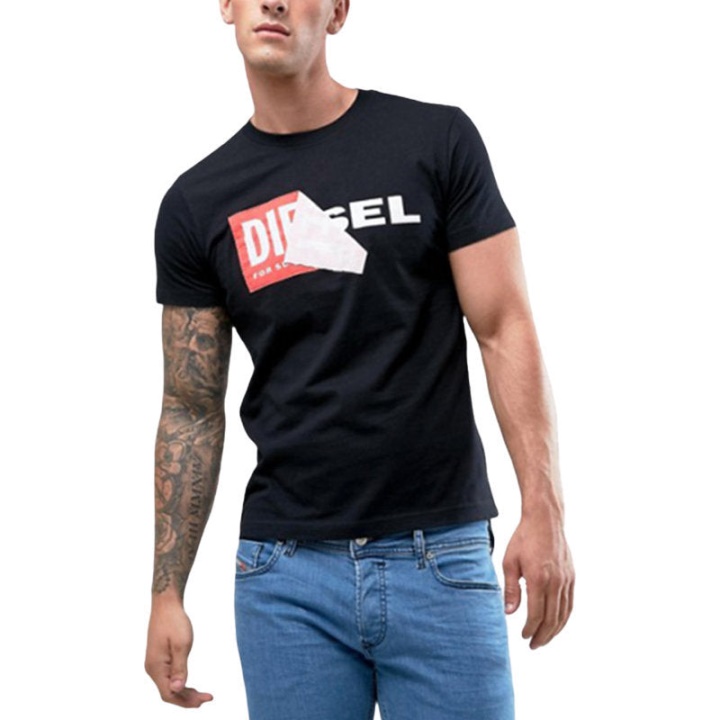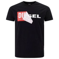 Diesel T Diego Qa חולצת טריקו לגברים עם שרוולים קצרים צווארון עגול בגזרה קלה גזרה שחורה קז’ואל