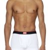 שלוש חבילות של תחתוני בוקסר לגברים מכותנה נמתחת, מכשירים שני זוגות חלקים ועיצוב לוגו כולל עם סמל מיקרו ‘D’. כל סגנון מכוסה ברצועת לוגו פסים.