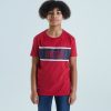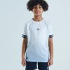 לוח חזה עם הדפס לוגו לבנים TeeModel הוא בן 11 ולובש מידה 11 עד 12